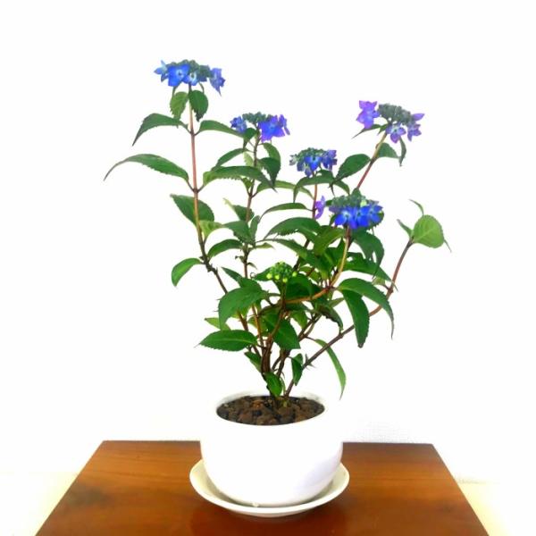 紫陽花の中でも盆栽に向いており、風情や色彩を楽しみ安く、初心者の方から玄人の方まで幅広くお楽しみ頂ける紫陽花盆栽。