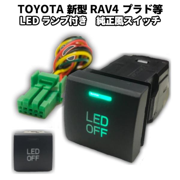 新型 RAV4 50系 プラド等 純正風スイッチ トヨタ LEDイルミネーション機能搭載 グリーン(緑)発光 デイライト、フォグランプ、LEDテープ、増設用