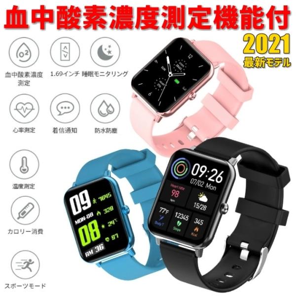 血中酸素濃度測定機能付 スマートウォッチ 大画面 1.69インチ