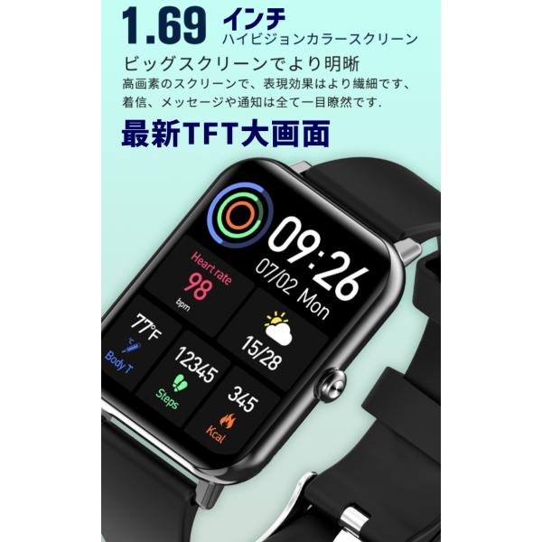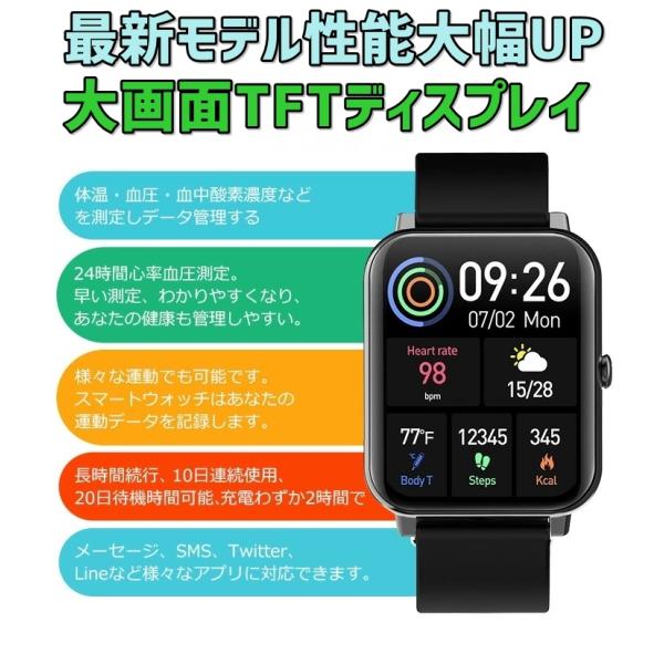 血中酸素濃度測定機能付 スマートウォッチ 大画面 1.69インチ 自宅療養 温度測定 健康管理 血圧 24時間体温測定 体温測定 日本語説明付