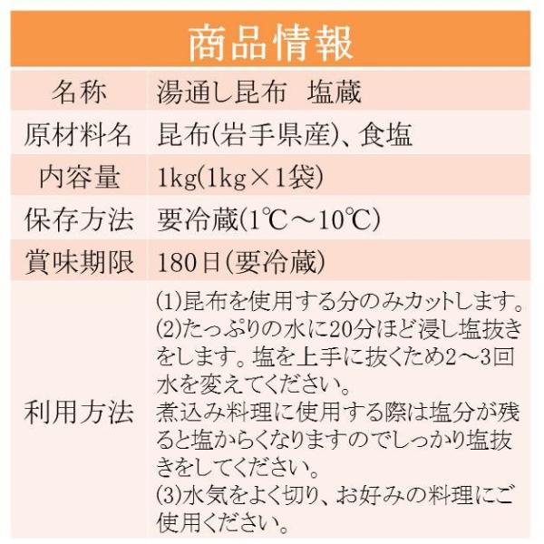 湯通し昆布 塩蔵品 国産(岩手県産) 1kg(1kg×1袋)