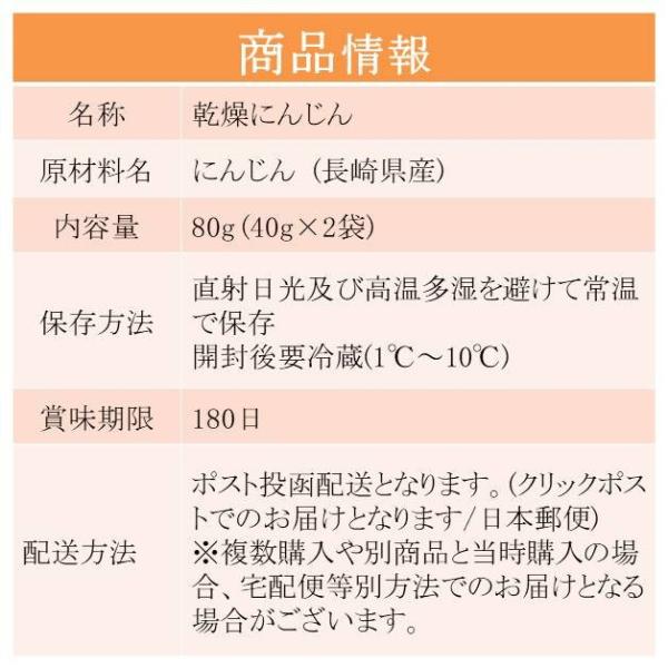 乾燥にんじん 国産 80g(40g×2袋) (原材料名:人参)