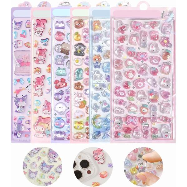 「6枚セット」 ぷくぷくシール 3dシール 手帳用 可愛い 立体 ポキシ樹脂 手帳用 日記帳用 ごほうび DIYクラフト用 女の子 男の子 封筒装飾用