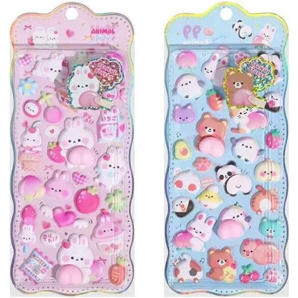 2枚セット 3dシール おしりぷにぷにシール かわいい ぷくぷく キャラクター マシュマロ ふわふわ もっちりスクイーズ ステッカー デコレーション