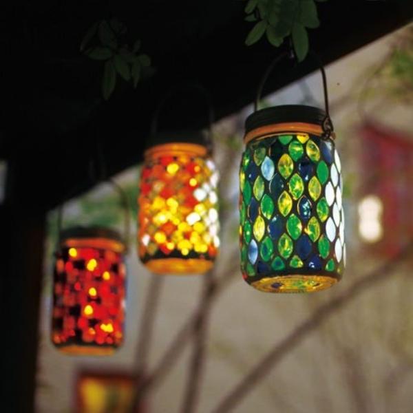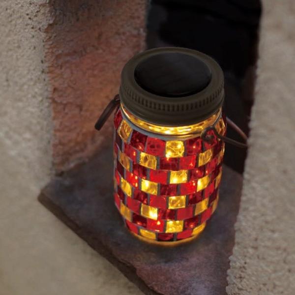 ランタン 照明 エトワル ガーデンライト ソーラーパネル 充電式 モザイクガラス 野外 屋外 ジャーボトル ランタン イルミネーション