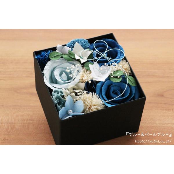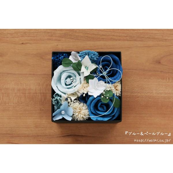 和紙のボックスフラワー 和紙ラッピング込(ブルー&ペールブルー) 結婚1周年の紙婚式 記念日 誕生日 ペーパーフラワー プレゼント あすつく対応