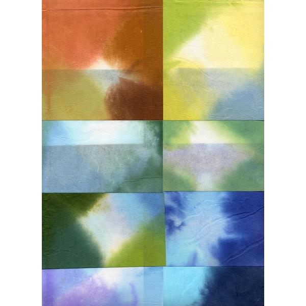 鳥取の青谷産の手漉き和紙です。約12cm角で、四隅を染め分けてあります。漉きあげた和紙を後で染めた、後染の和紙です。中厚の使いやすい紙です。原料:楮・木材パルプ正方形なので、折り紙としてもお使いいただけます。