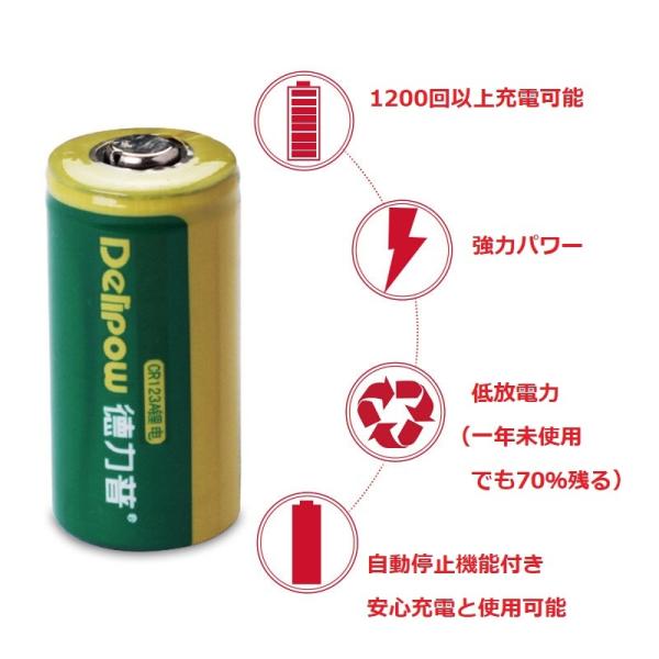 DELIPOW CR123A 2本セット リチウム 充電式電池 3.6V(3.7V兼用) 1000mah lc 16340 充電式電池 高品質ブランド品 リチウム イオンバッテリー「800-0129」