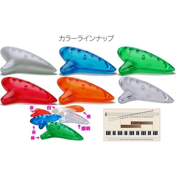 プラオカリナは、割れない 割れにくい リーズナブルな価格。お子様にも安心。オカリナを触ったことがない方にも、手軽に吹いていただき、陶器製のオカリナの雰囲気を感じていただけます。ナイトオカリナは、陶器製のオカリナを忠実に再現。教室などで体験講座に用いられることも少なくありません。またオカリナ愛好者の方々は陶器製オカリナに忠実な設計、音量が少ないという点から、ご家庭内での練習用に使われています。プラオカリナの音域は1本で1オクターブと5度の音域。グランドピアノが7オクターブということを考えると大変音域の狭い楽器です。アルトもありますがこちらはボディも小さい高音域のソプラノCです。どちらも定番のC調ですので安心。プレゼントにも大変喜ばれます。■NIGHT ナイト Pla Ocarina SC プラオカリナ ■ソプラノC ■サイズ:25×115×75 mm■重量:30g■カラー ラインナップ:赤,青,緑,橙,白,透明※白はパールがかっていて完全な透明ではありません。※画像は参考にアルトの画像ですので実際は少しスマートなボディになります。製品は絶対に割れないという保証はございません。またプレゼント包装はお控え頂いております。ご了承下さい。