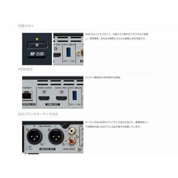 『BD-MP4K』は、4Kコンテンツに対応した1Uラックマウントサイズの外部制御可能な業務用ブルーレイ/マルチメディアプレーヤーです。ブルーレイに加えて、DVD、CDの再生にも対応。SDカード、USBメモリからの再生も可能です。幅広いディスクフォーマットおよび、動画、静止画、音声のファイルフォーマットに対応しています。
