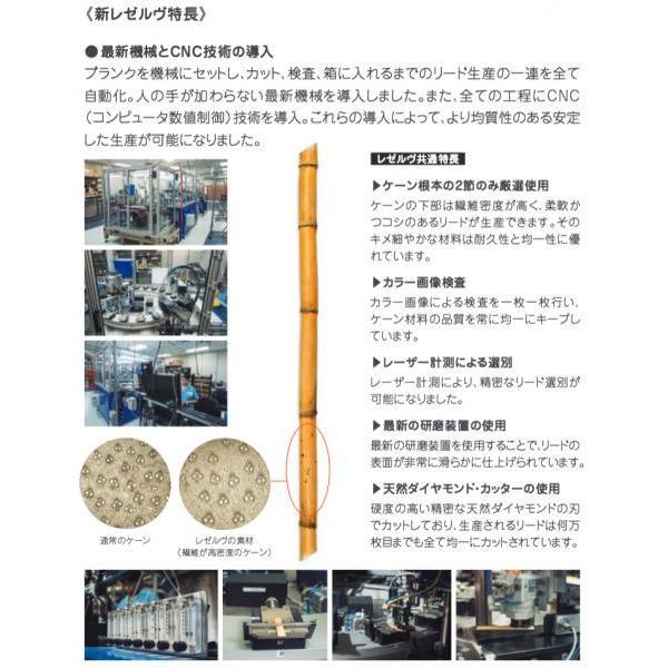アンファイルドカットの3S 1枚、アンファイルドカットの3M 1枚の合計4枚セット。3ファイルドカットとアンファイルドカットの2種類の厚み違いのリードが各2枚ずつ、計4枚のお試し用パック。くっきりとした硬めのハートと長めのヴァンプ。このカットが、今までにない抜群のプロジェクションとを生み出し、さらに優れた柔軟性と素早いレスポンスを実現。ファイルドカットとアンファイルドカットの2種類があり、2Sから4Hまで(2S/2M/2H/3S/3M/3H/4S/4M/4H)強度設定があるのでより奏者の好みに合わせて細かく選ぶことが可能。