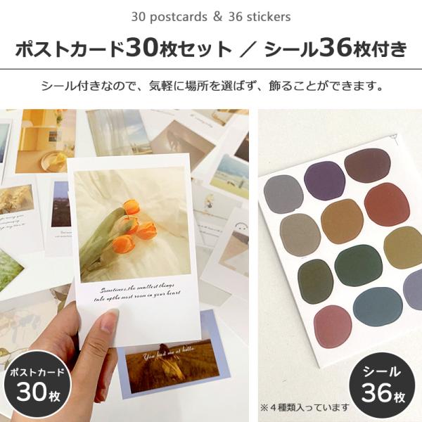 ポストカード 30枚セット シール付 おしゃれ 韓国 海外 壁 インテリア 花 風景 什器 飾り付け メッセージカード 1000円ポッキリ