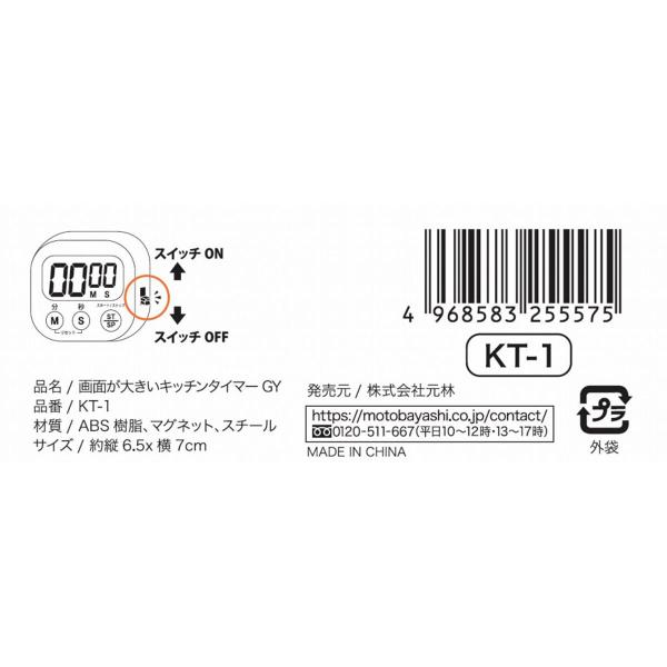 画面(約縦29×横55mm)が大きくて見やすい。フック穴・スタンド・マグネット付き。単4電池1個(別売)【材質】ABS樹脂、マグネット、スチール【JAN】4968583255575【パッケージサイズ】95×135×3mm【関連キーワード】キッチンタイマー/キッチン/タイマー