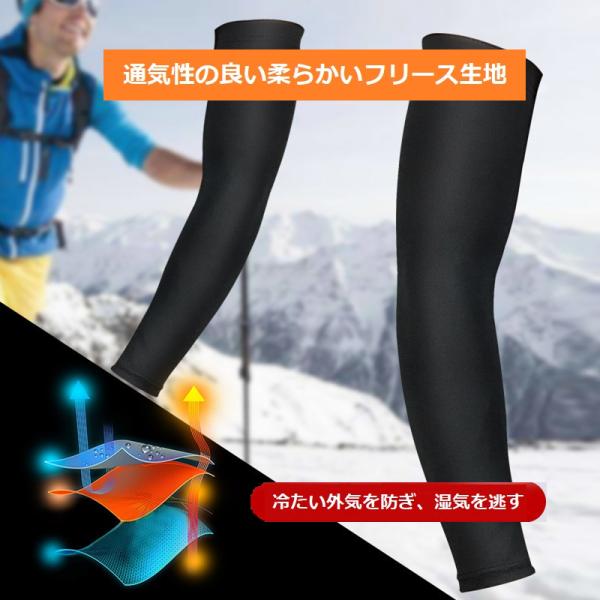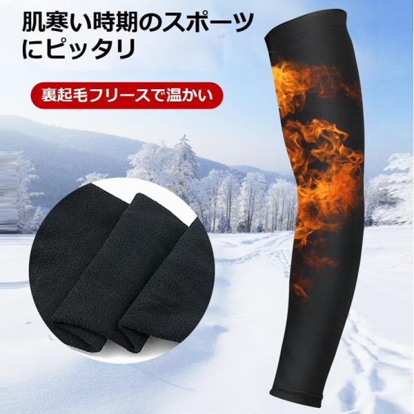 アームウォーマー 冬 裏起毛 アームカバー 自転車 暖かい メンズ レディース スポーツ 2枚入り 保温 防寒 ゴルフ ランニング 薄手 無地 黒
