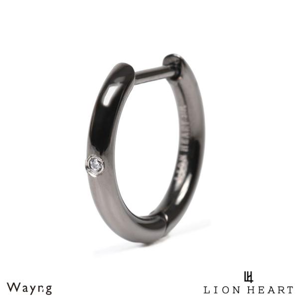 ライオンハート 別注 ハワイアン フープピアス ストーン サージカルステンレス ブラック ダイヤモンド 黒 ハワイアンジュエリー 片耳用 1点売り メンズ ブランド