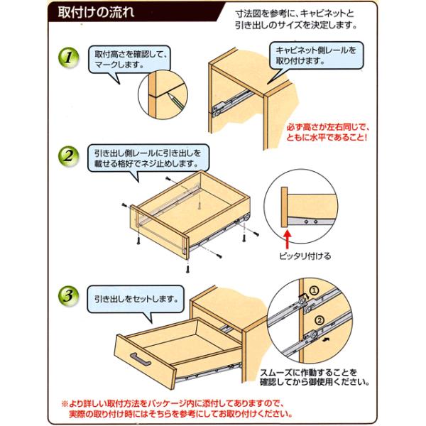 引き出しの底に取り付けるスライドレール。DIYリフォームグッズ