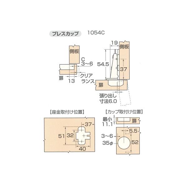 スライド蝶番(ヘティヒ) 35ミリ全かぶせキャッチ付き(1個入り)