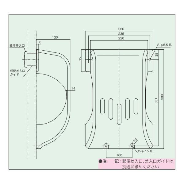 マンション等の玄関ドアポスト口用の郵便受け箱(樹脂製)