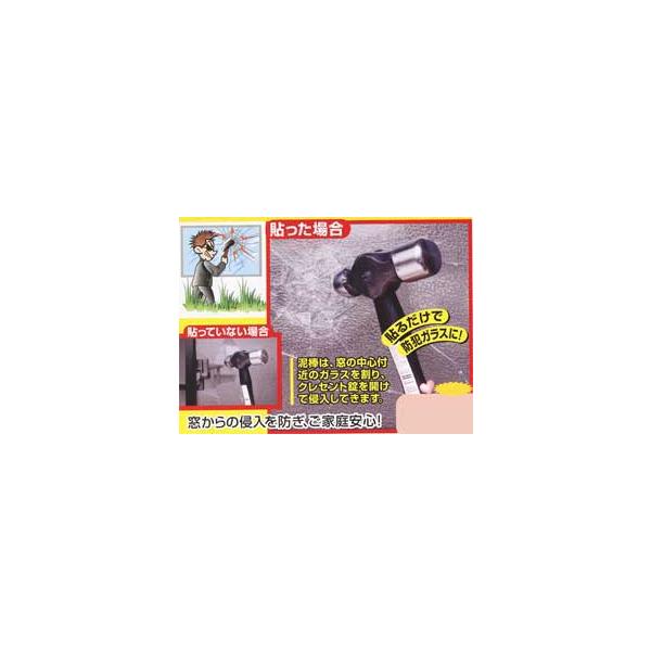 【防犯対策グッズ】窓ガラスに貼る防犯用のフィルム。窓ガラスのクレセント周りに貼り付けて防犯ガラスに。A3サイズの大きさでクレセント周りをしっかりカバーしてくれる。