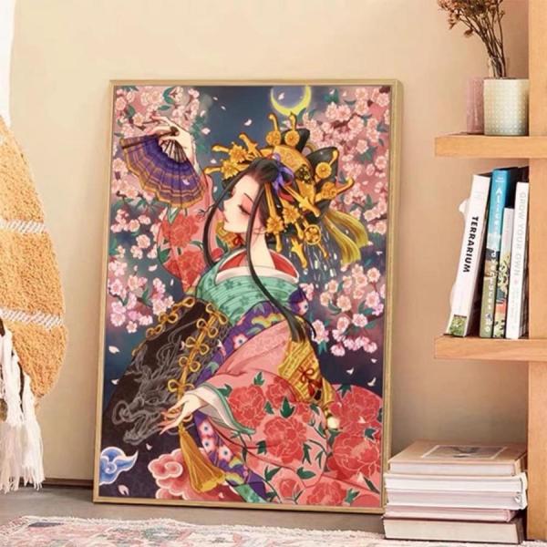 5D ダイヤモンドアート ビーズ絵画 花魁 和風 和服 初心者向け リビング 寝室 装飾 図案印刷 送料無料