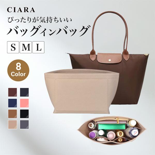 バッグインバッグ ロンシャン インナーバッグ 水筒 自立 大きめ フェルト 小さめ 仕切り付き ファスナー ポケット付き 専用 プレゼント ギフト 春 母の日