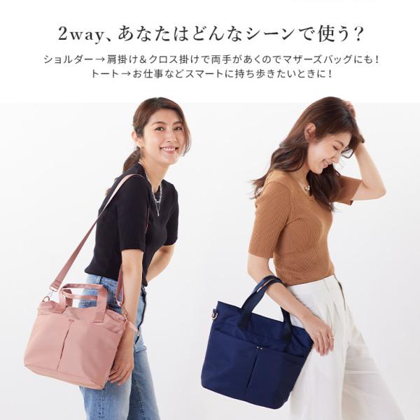 トートバッグ レディース 小さめ 軽い ポケット 仕切り 撥水 通勤 ファスナー ナイロン 60代 斜めがけ ブランド b5 50代 3way 大容量 旅行 母の日 ギフト 夏
