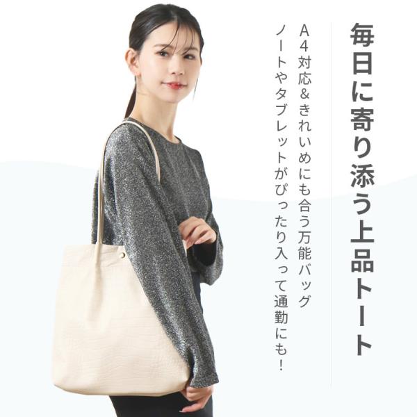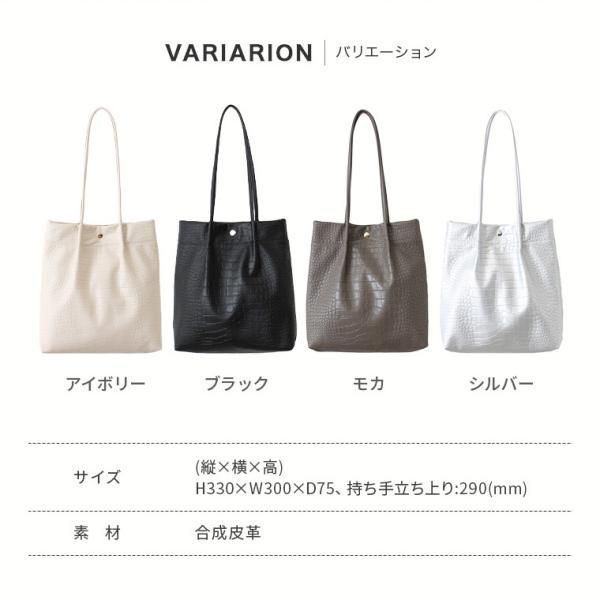 バッグ レディース トートバッグ トート 肩掛け かたかけ a4 上品 高見え シンプル 大容量 A4対応 多収納 軽い 軽量 収納 丈夫 秋冬 メタリック 光沢 型押し クロコ クロコダイル アニマル 合皮 シルバー 大人 女性 たっぷり 使いやすい 多機能 マザーズバッグ ママ ビジネス ボストンバッグ ビジネス ボストンバッグ デイリー 新生活応援 新生活応援セット PC パソコン 仕事 オフィス 通勤 通学 新生活バッグ 自転車通勤 ママバッグ 実用的 収納力 持ち手 長め 普段使い 観戦 帰省 整理整頓 整理しやすい 陣痛バッグ 高校生 カジュアルバッグ 春 夏 秋 冬 アウトドア 旅行 旅行用 旅行バッグ トラベル 収納ケース 出張 女子 大学生 OL 会社員 20代 30代 40代 50代 60代 70代 80代 かわいい 可愛い おしゃれ カジュアル 母の日 花以外 敬老の日 孫 おばあちゃん クリスマス デート パーティー 彼女 誕生日 新生活 贈り物 福袋 プレゼント ギフト セール プチプラ 買い回り 1月 2月 3月 4月 5月 6月 7月 8月 9月 10月 11月 12月 お得 ポイント消化 送料無料 2026 遅れてごめんね ホワイトデー 推し活
