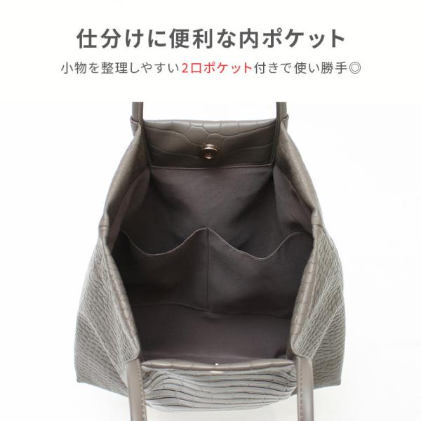 トートバッグ レディース 大きめ a4 軽い ポケット 仕切り 縦 大容量 ブランド メタリック 通勤 クロコ 型押し アニマル プレゼント 母の日 ギフト 夏