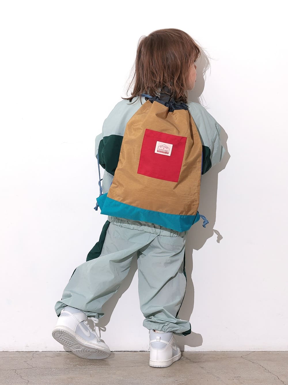 元気なマルチカラーが アクセントのキッズナップサックです。