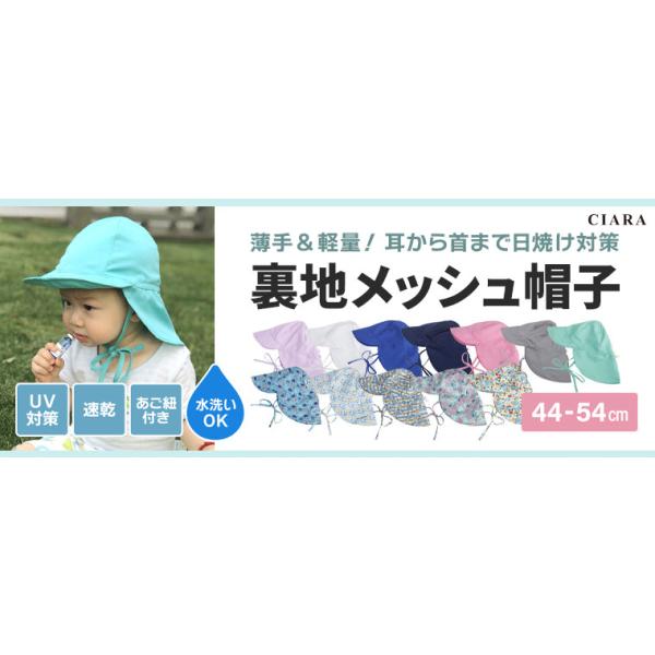 送料無料 裏地メッシュキッズ帽子 あご紐付き UPF50+