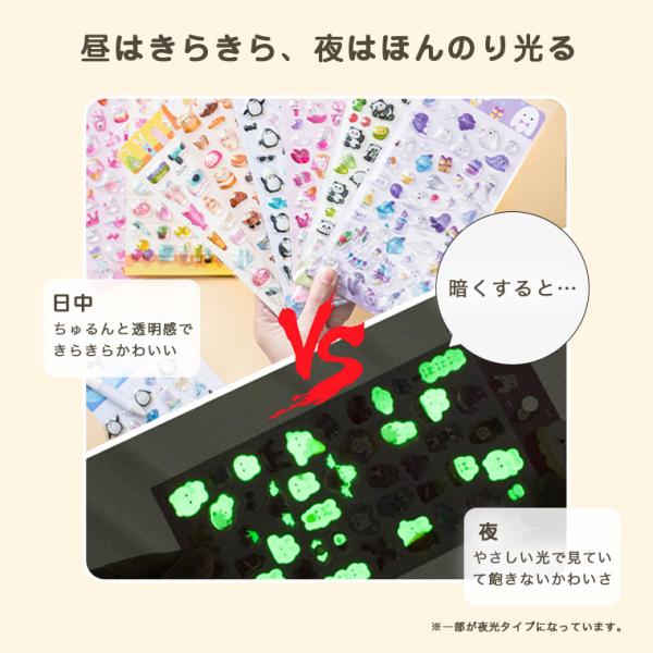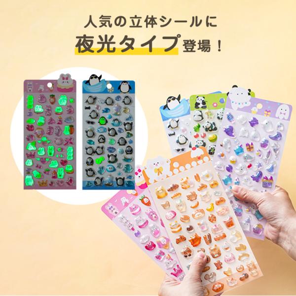 3dシール ぷくぷく 夜光 立体シール シール キャラクター おはじきシール 光る 透明 クリア 蓄光 猫 ペンギン うさぎ 海 ぷっくり プレゼント 母の日 ギフト 夏