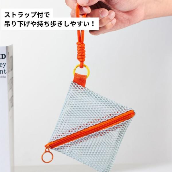 送料無料 ストラップ付 持ち歩き メッシュポーチ
