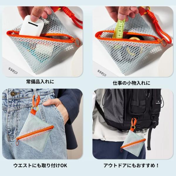 メッシュポーチ ミニ ポーチ 財布代わり 小物入れ 小さめ カラビナ コンパクト かわいい 軽量 小銭入れ ギフト 母の日 夏 ブランド 20代 30代 40代 50代
