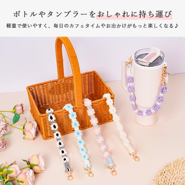 タンブラーホルダー ボトルホルダー 手編み風 フラワー 編み 花柄 ドリンクホルダー 持ち歩き ストラップ カップホルダー タンブラー 持ち運び ドリンクストラップ テイクアウト シリコンリング STANLEY スタンレー サーモス THERMOS 対応 マイボトル 通勤 通学 ジム ヨガ フェス 旅行 散歩 シリコン ホワイト ブラック ブルー ピンク パープル ベージュ かわいい おしゃれ きれいめ カジュアル バレンタインデー バレンタイン チョコ以外 ホワイトデー お返し 母の日 花以外 敬老の日 孫 おばあちゃん クリスマス デート パーティー 彼女 誕生日 新生活 贈り物 福袋 プレゼント ギフト セール プチプラ 1月 2月 3月 4月 5月 6月 7月 8月 9月 10月 11月 12月 お得 ポイント消化 送料無料 2024 遅れてごめんね