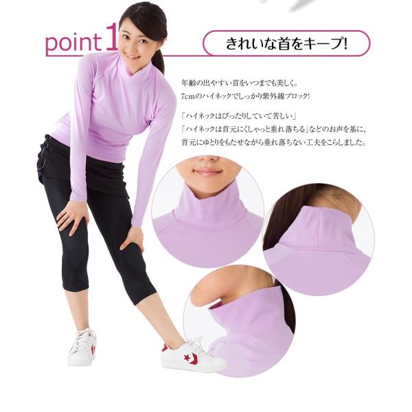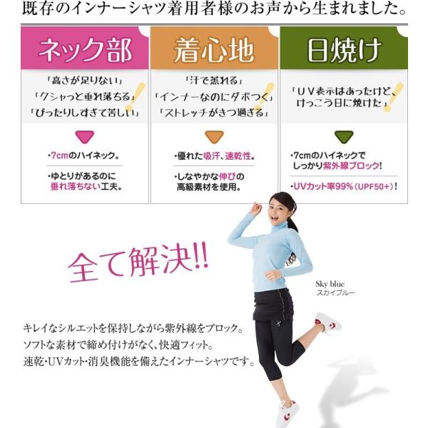 UVカット ハイネックインナー UV スポーツ インナー シャツ レディース 長袖 UPF50+ 首 紫外線対策 グッズ テニス ゴルフ 送料無料 White Beauty