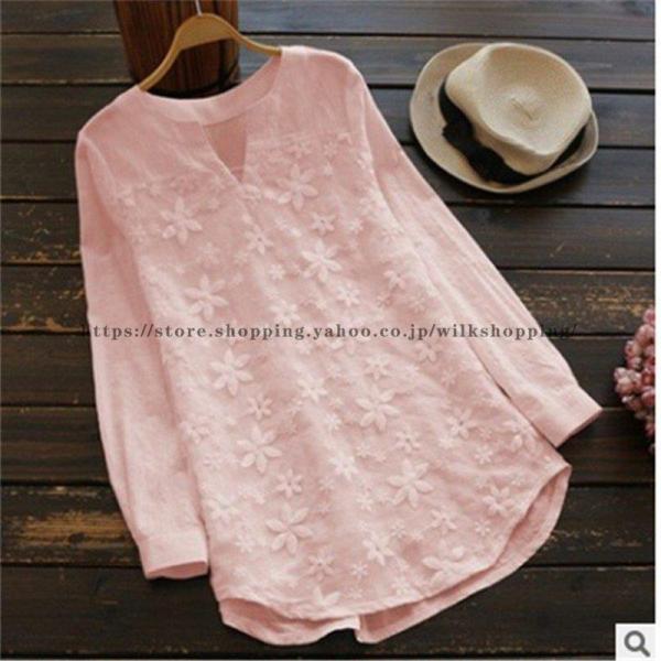 シャツ ブラウス トップス 夏 レディース 綿麻 長袖 チュニック 体型カバー 薄手 涼しい ゆったり 大きいサイズ プルオーバー 花柄 リネン 40代 50代 秋