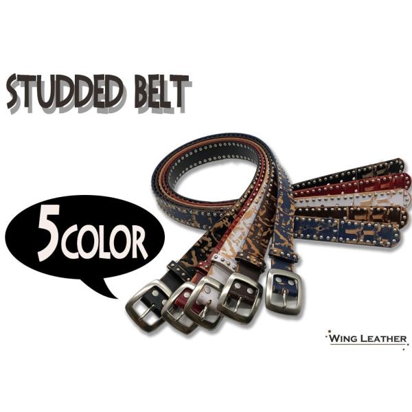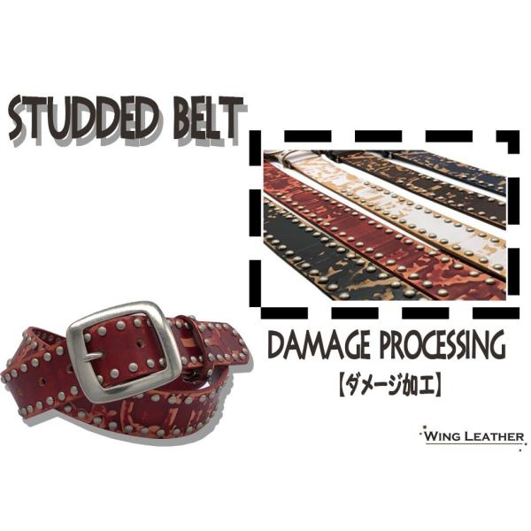 ベルト メンズ 本革 カジュアル イタリアンレザー カジュアルベルト 牛革 スタッズ 黒色 白色 ダークブラウン 赤色 ネイビー 40mm ダメージ加工