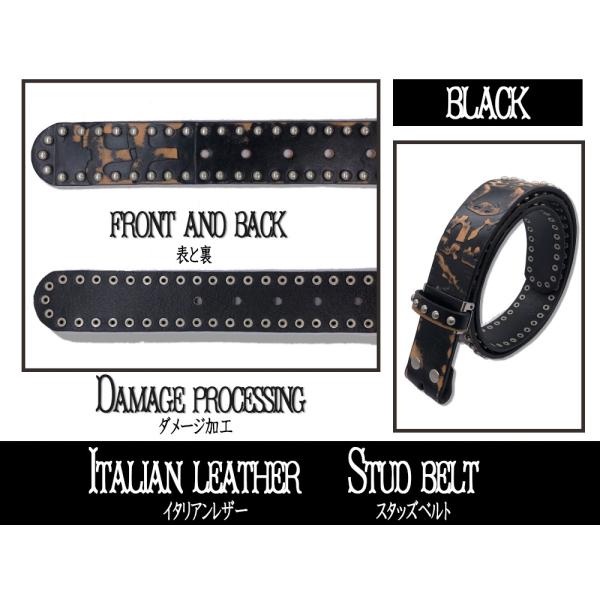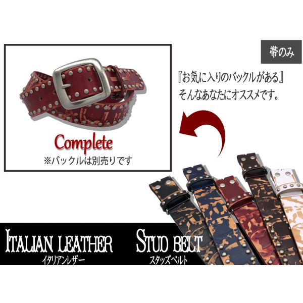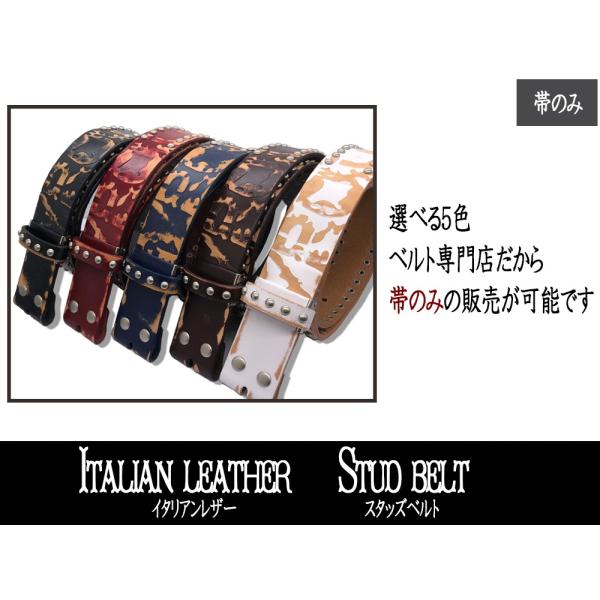 ベルト イタリアンレザー ベルト メンズ スタッズ 本革 帯のみ 交換用 バックル無し 40mm 牛革 黒色 ダークブラウン ネイビー ホワイト レッド