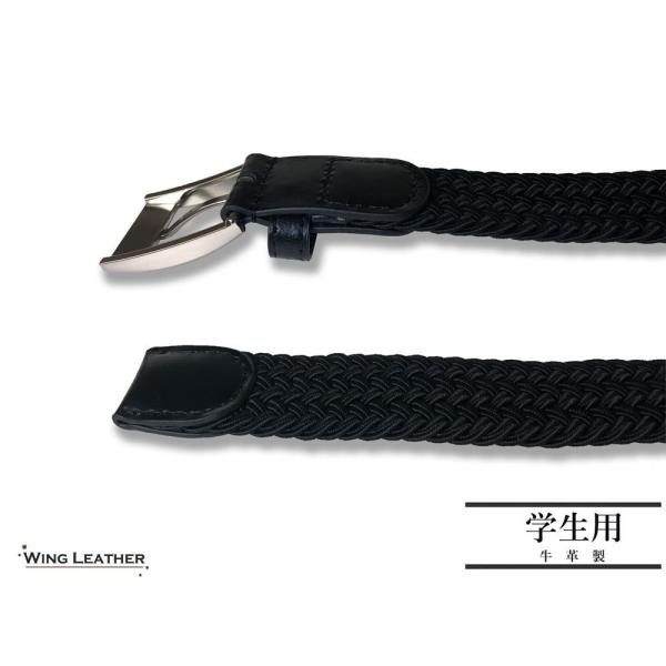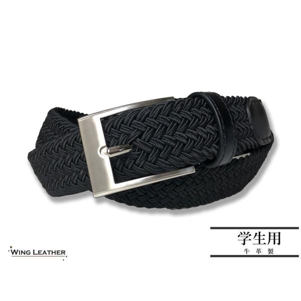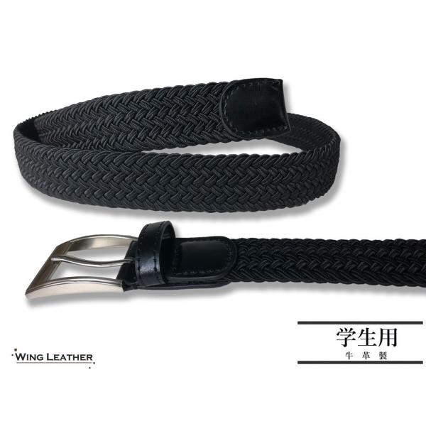 学生 ベルト 黒 メンズ ゴムメッシュ 紳士 本革 牛革 メンズ 黒 黒色 ブラック S Mサイズ
