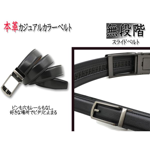ベルト メンズ 本革 カジュアル 穴レス レザー 牛革 ゴルフベルト スライド式 バックル 紳士 学生 穴なし オートロック 無段階 黒色 茶色 白色 赤色 青色