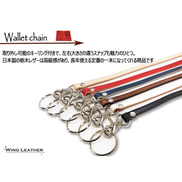 ウォレットチェーン 革 シンプル 栃木レザー レザー ショート 黒 茶色 キャメル ネイビー ホワイト レッド 牛革 日本製 本革