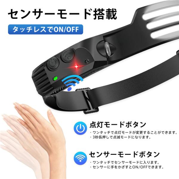 ヘッドライト 充電式 LED センサー 高輝度 ヘッドランプ 防水 軽量 ランニング キャンプ 釣り 防災 アウトドア 広角照明 防塵 現場 明るい 爆買