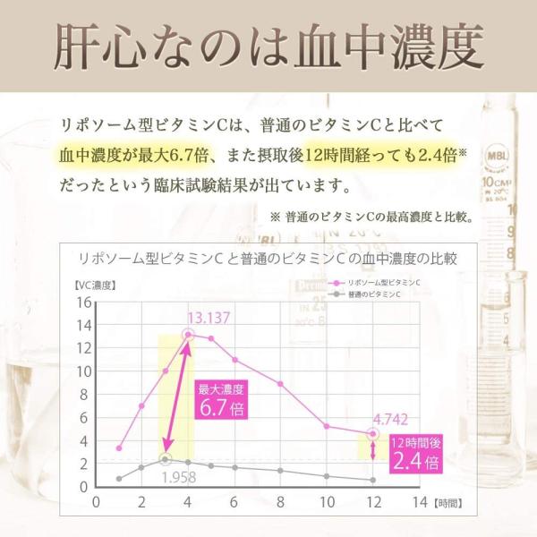 吸収率と持続性を高めるよう医療の現場でも使われる技術で、臨床試験では普通のビタミンCと比べ☆血中濃度差は6.7倍☆と高浸透、高濃度維持を証明しています。