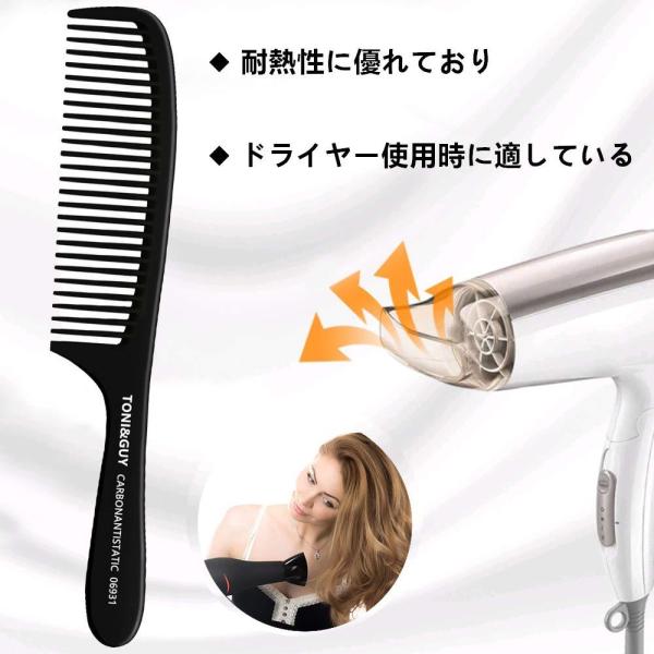 【プロ用コーム】:プロも愛用しているこのコームは、濡れた髪にも使えるウェット&ドライ仕様です。髪を洗っている最中に絡まるのをほどいたり、