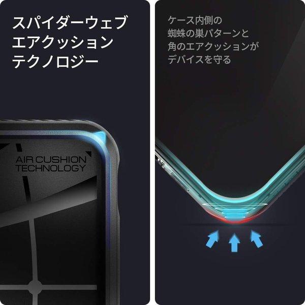 【滑りにくいグリップ感&衝撃吸収】ケース背面と側面に滑り止め加工を施し、握りやすいケースです。ケース内側に配置した蜘蛛の巣状のスパイダーウェブと、ケース角のエアクッションが衝撃を吸収・緩和いたします
