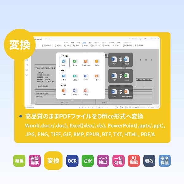 PDF編集ソフト PDFをエクセルに変換 PDF作成 変換 結合 圧縮 OCR