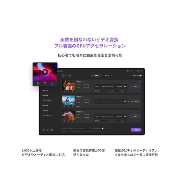 ◆1,000+動画?音楽形式に対応、高画質をそのまま