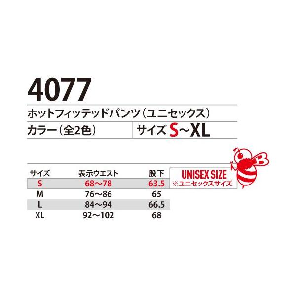 バートル 4077 ホットフィッテッドパンツ(ユニセックス)