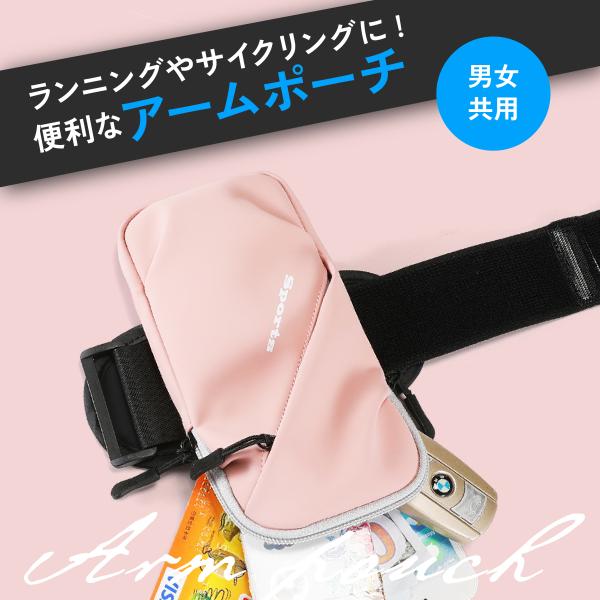ランニング アームポーチ スマホ アームバンド ウォーキング サイクリング 2ポケット 防水 通気性 小物入れ 貴重品入れ