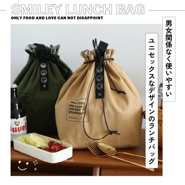 ランチバッグ 保冷 保温 大きめ おしゃれ 巾着 アルミ素材 スマイル 大容量 メンズ レディース お弁当 ピクニック お弁当入れ アウトドア